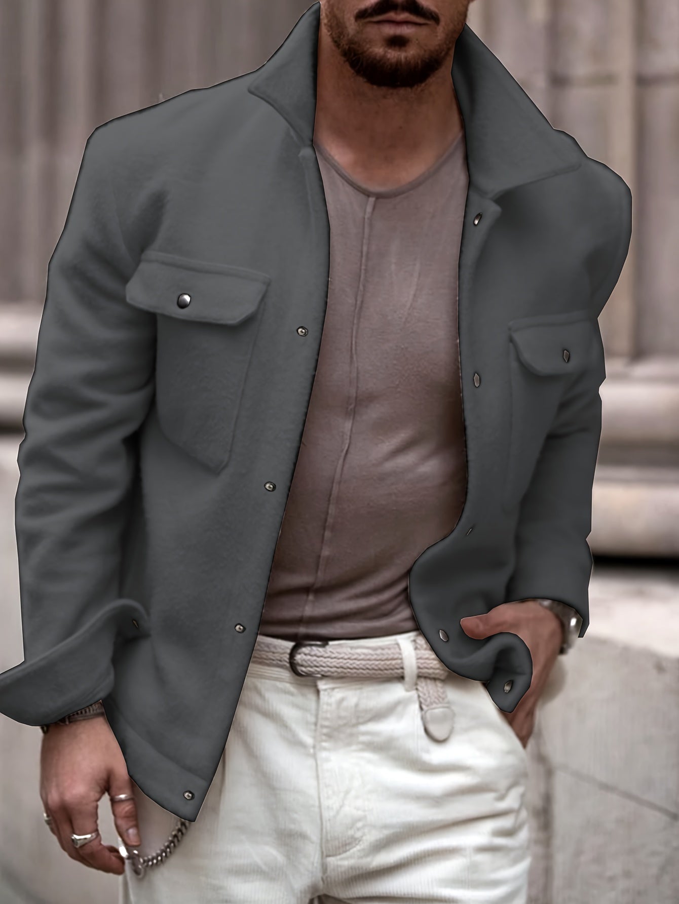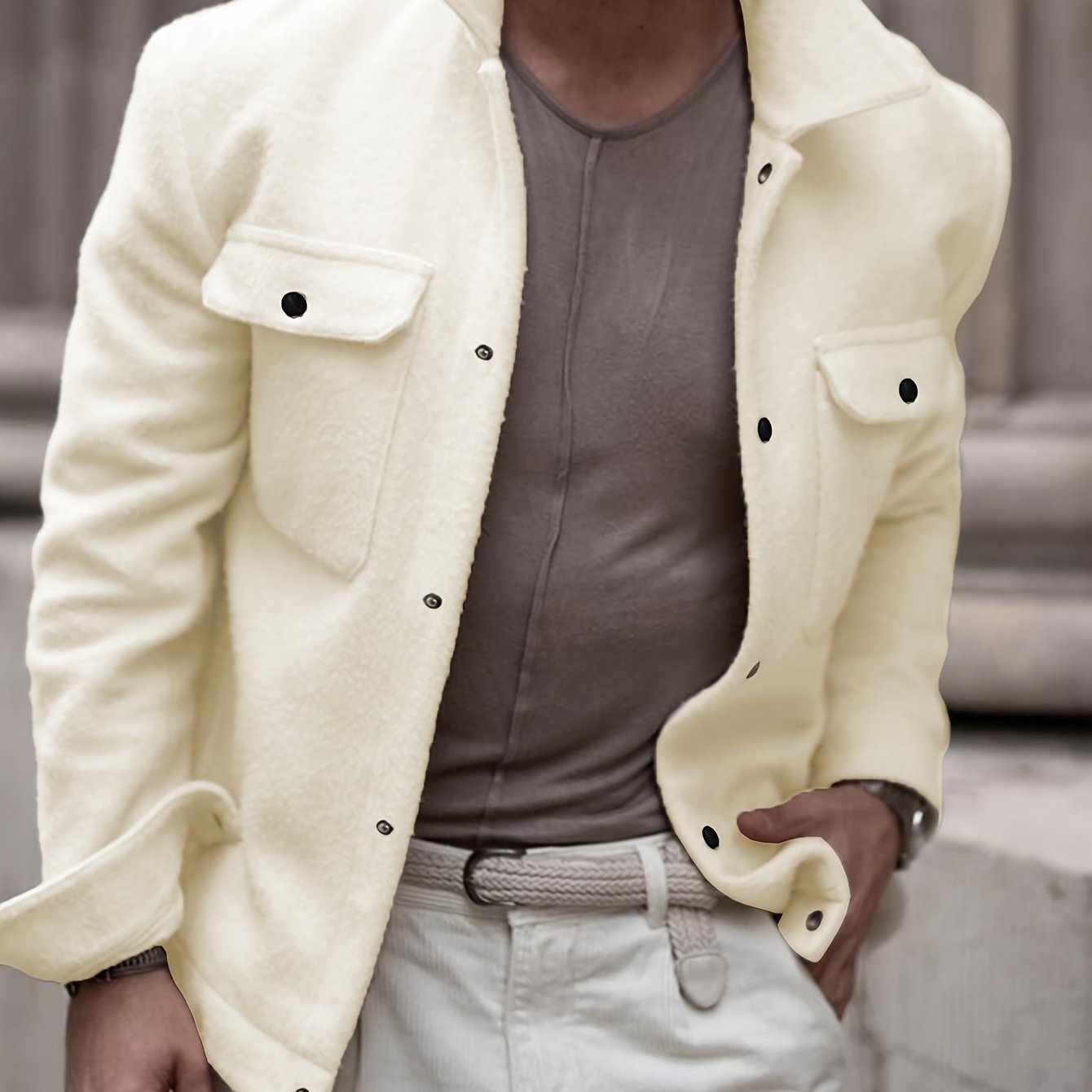 Herren Fashion-Klassik Fleecejacke – Mit umklappbarem Kragen und Druckknöpfen, weiches Strickfleece, lässig